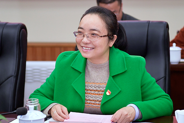 宋细妹介绍浔阳一年来各项工作实现的新进步和取得的新成绩