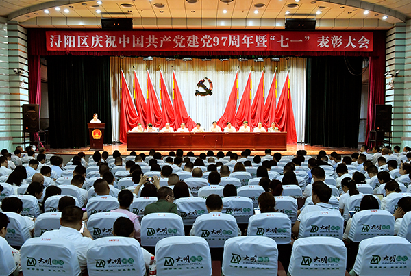 6月30日,浔阳区召开庆祝中国共产党建党97周年暨“七一”表彰大会,共庆党的生日,共话党的发展,表彰优秀共产党员、优秀党务工作者、先进基层党组织,为浔阳新发展,凝聚共识、汇集力量、加油鼓劲。